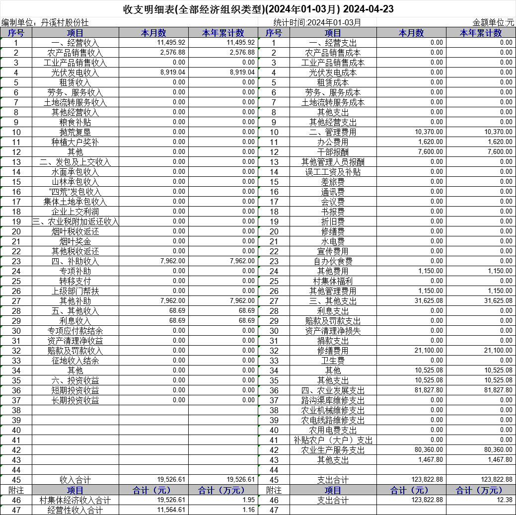 【財務收支】小松鎮(zhèn)丹溪村2024年1季度財務收支公示
