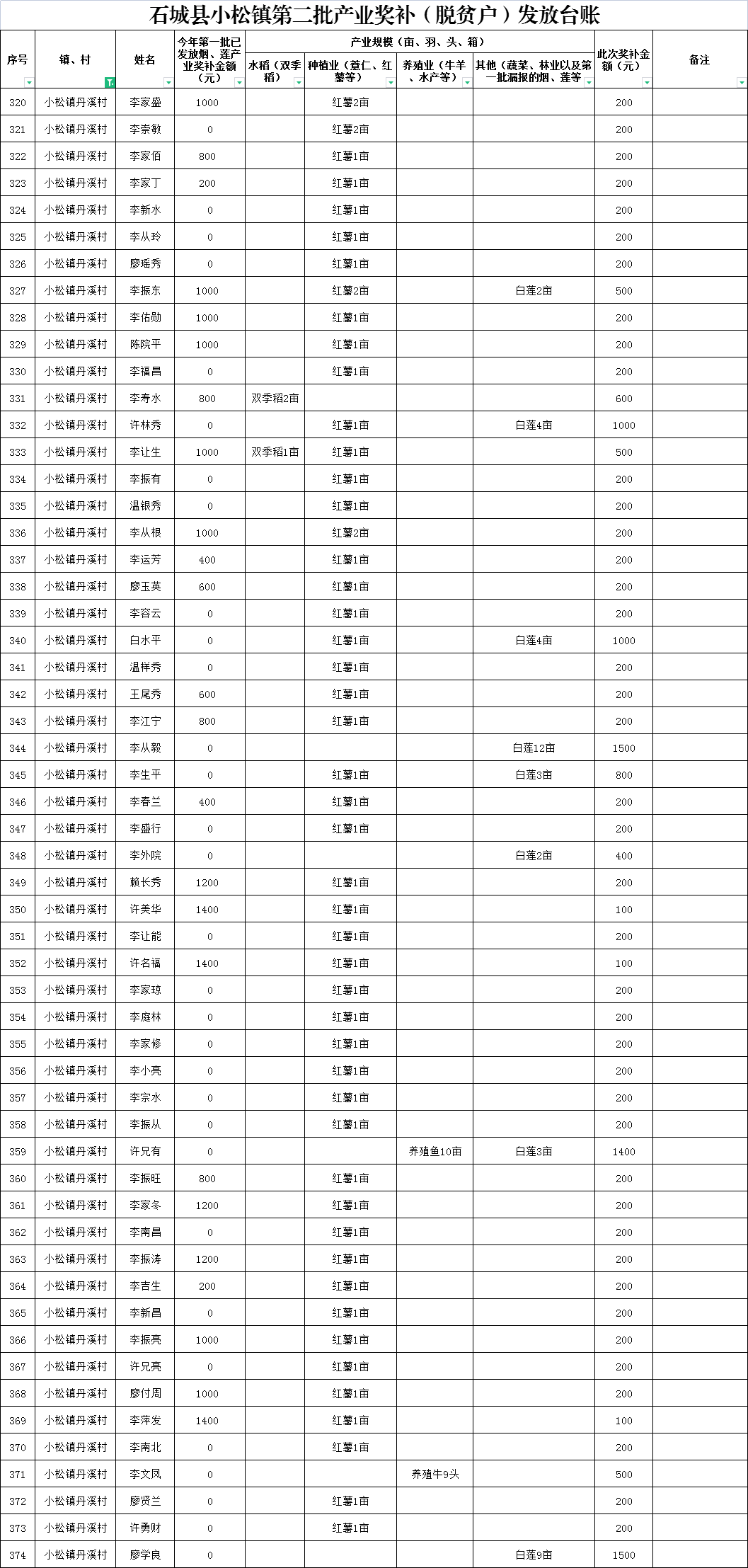【產(chǎn)業(yè)扶持】石城縣小松鎮(zhèn)丹溪村第二批產(chǎn)業(yè)獎補(bǔ)(脫貧戶)發(fā)放臺賬