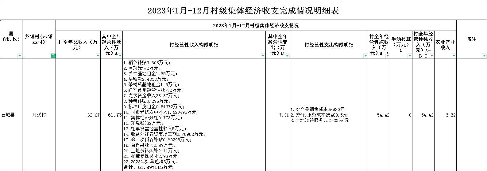 【集體統(tǒng)一經(jīng)營的經(jīng)營性資產(chǎn)】石城縣小松鎮(zhèn)丹溪村2023年村集體經(jīng)濟(jì)收入情況公示表
