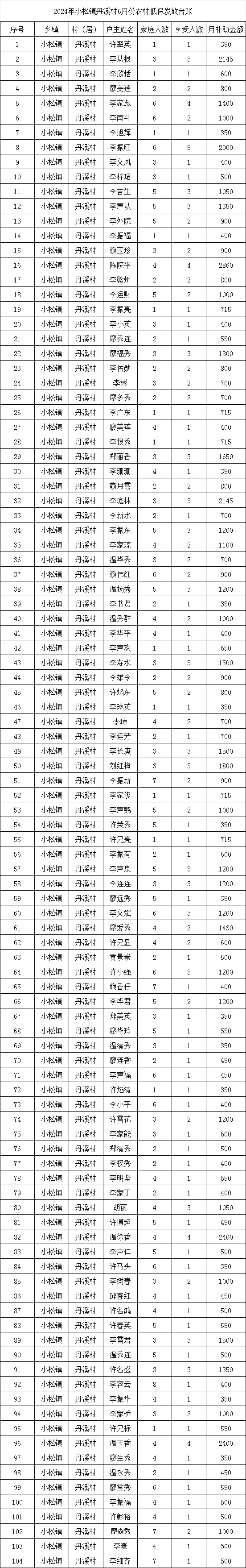 【最低生活保障】小松鎮(zhèn)丹溪村2024年6月農(nóng)村低保發(fā)放公示