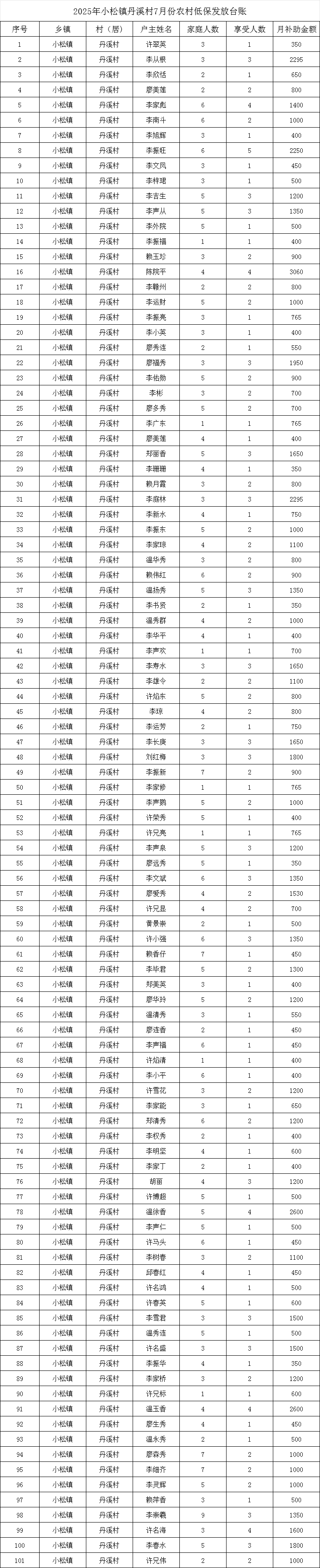 【最低生活保障】小松鎮(zhèn)丹溪村2025年7月農(nóng)村低保發(fā)放公示
