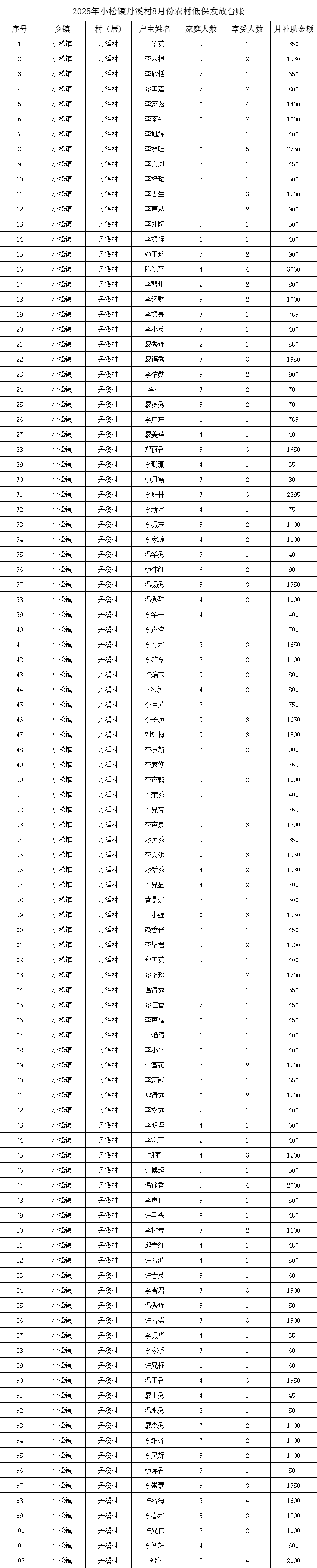 【最低生活保障】小松鎮(zhèn)丹溪村2025年8月農(nóng)村低保發(fā)放公示