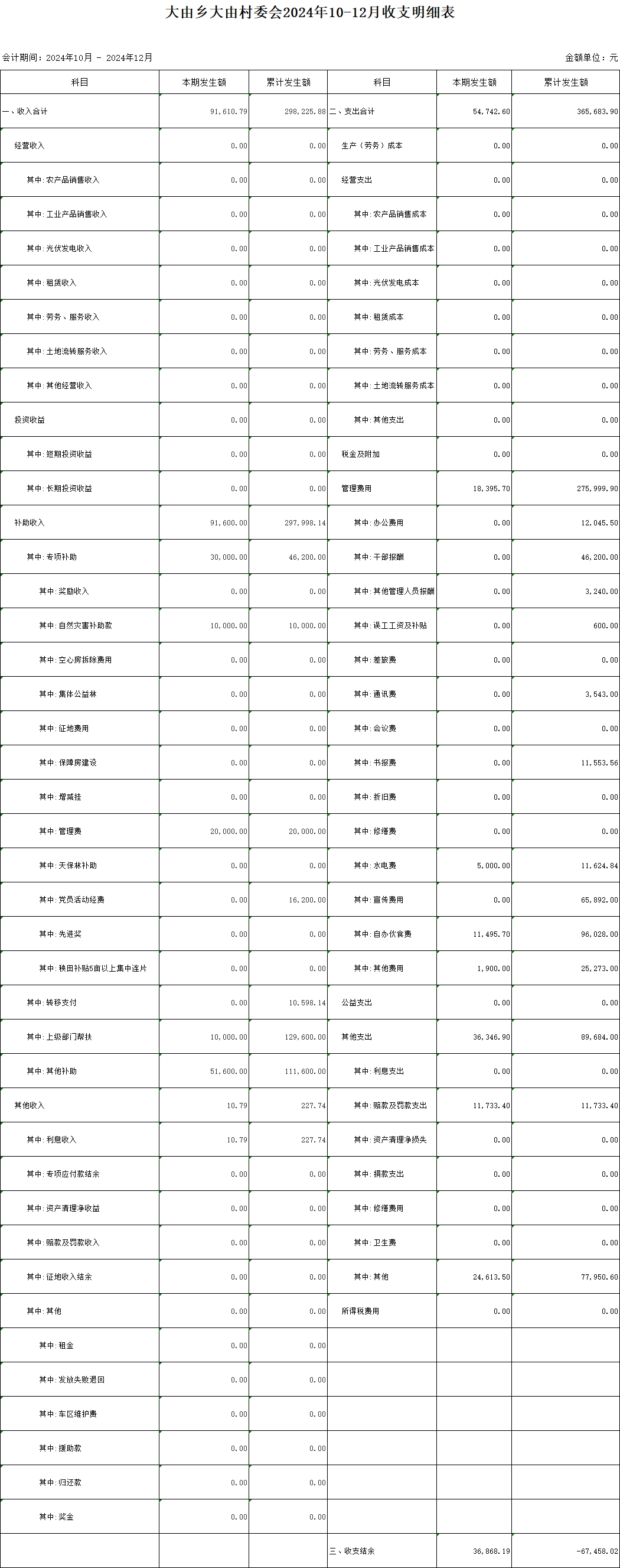 大由鄉(xiāng)大由村委會(huì)2024年10-12月收支明細(xì)表