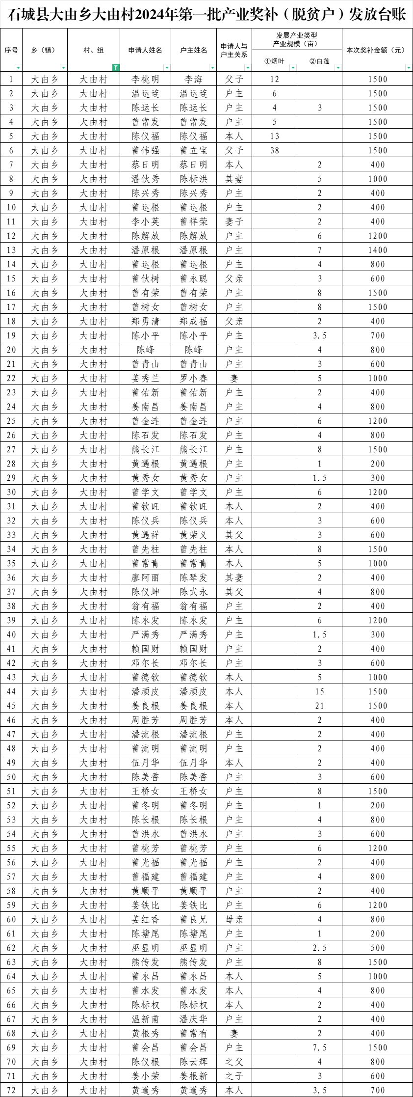 石城縣大由鄉(xiāng)大由村2024年第一批產(chǎn)業(yè)獎補(bǔ)(脫貧戶)發(fā)放臺賬