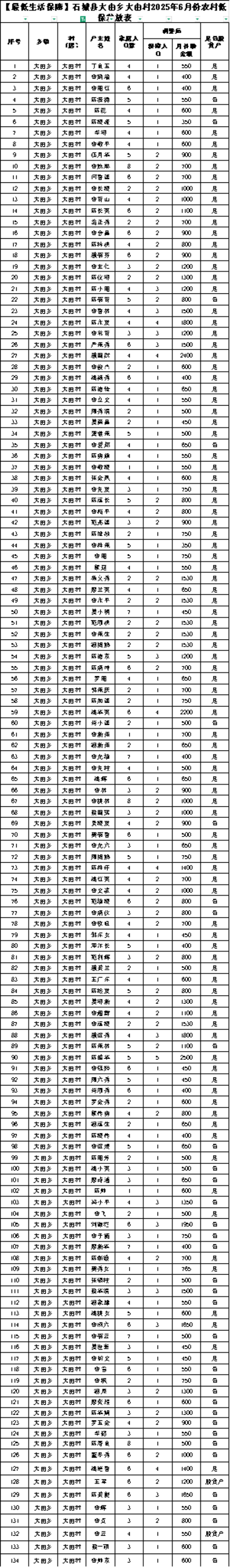 【最低生活保障】石城縣大由鄉(xiāng)大由村2025年6月份農(nóng)村低保發(fā)放表