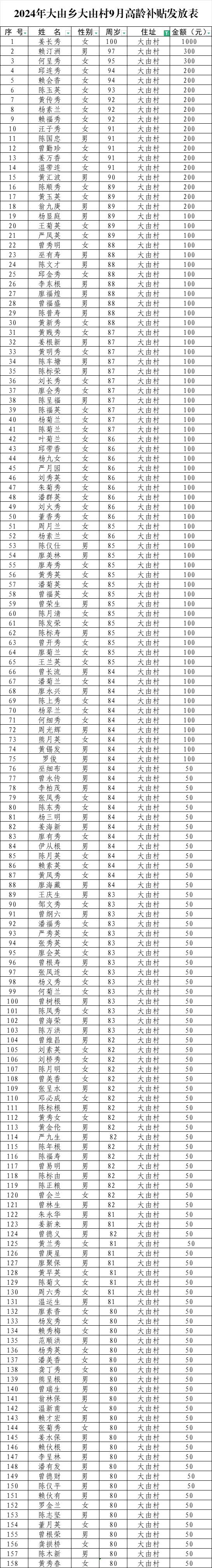 【老年人申領(lǐng)補貼和發(fā)放信息】2024年大由鄉(xiāng)大由村9月高齡補貼發(fā)放表
