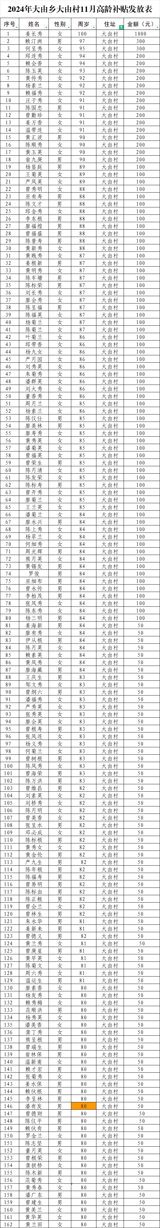 【老年人申領(lǐng)補(bǔ)貼和發(fā)放信息】2024年大由鄉(xiāng)大由村11月高齡補(bǔ)貼發(fā)放表