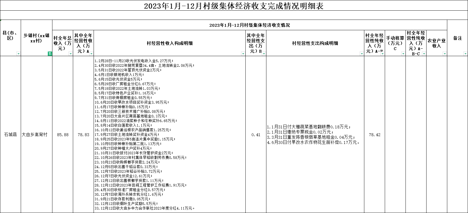 2023年1月-12月村級集體經(jīng)濟收支完成情況明細(xì)表