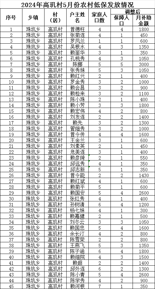 2024年高璣村5月份農(nóng)村低保發(fā)放情況