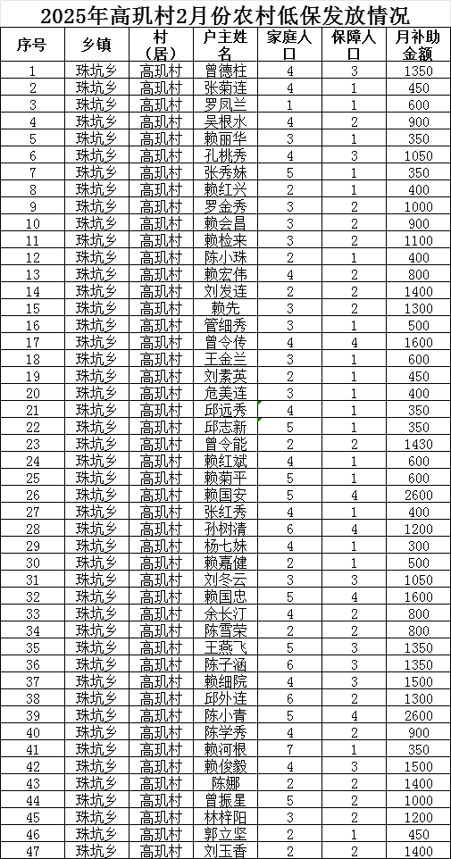 2025年高璣村2月份農(nóng)村低保發(fā)放情況