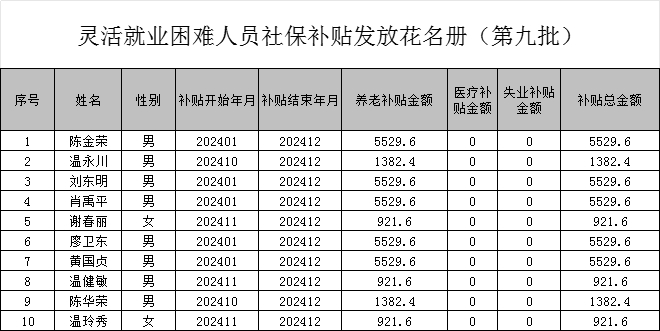 根據(jù)贛財(cái)社《2019》1號(hào)文件,現(xiàn)將2024年第九批“4050”就業(yè)困難人員靈活就業(yè)社保補(bǔ)貼資金擬撥付予以公示,公示期為7天,公示時(shí)間:2024年10月21日-10月28日,如有異議,請(qǐng)于公示期內(nèi)向石城縣就業(yè)創(chuàng)業(yè)服務(wù)中心提出意見(jiàn)(聯(lián)系電話0797-7182781)。
