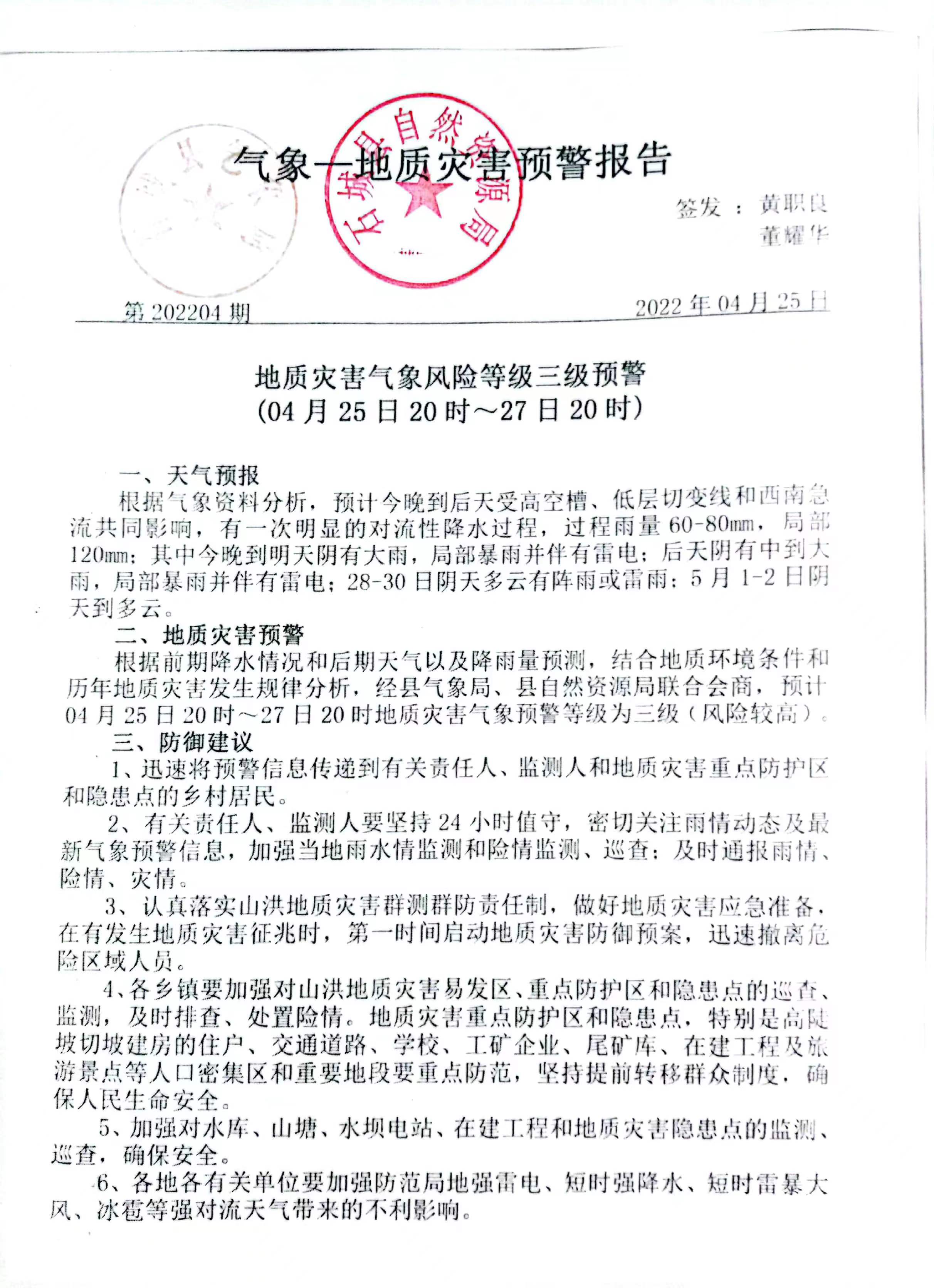 2022年第四期地質(zhì)災(zāi)害氣象預(yù)警