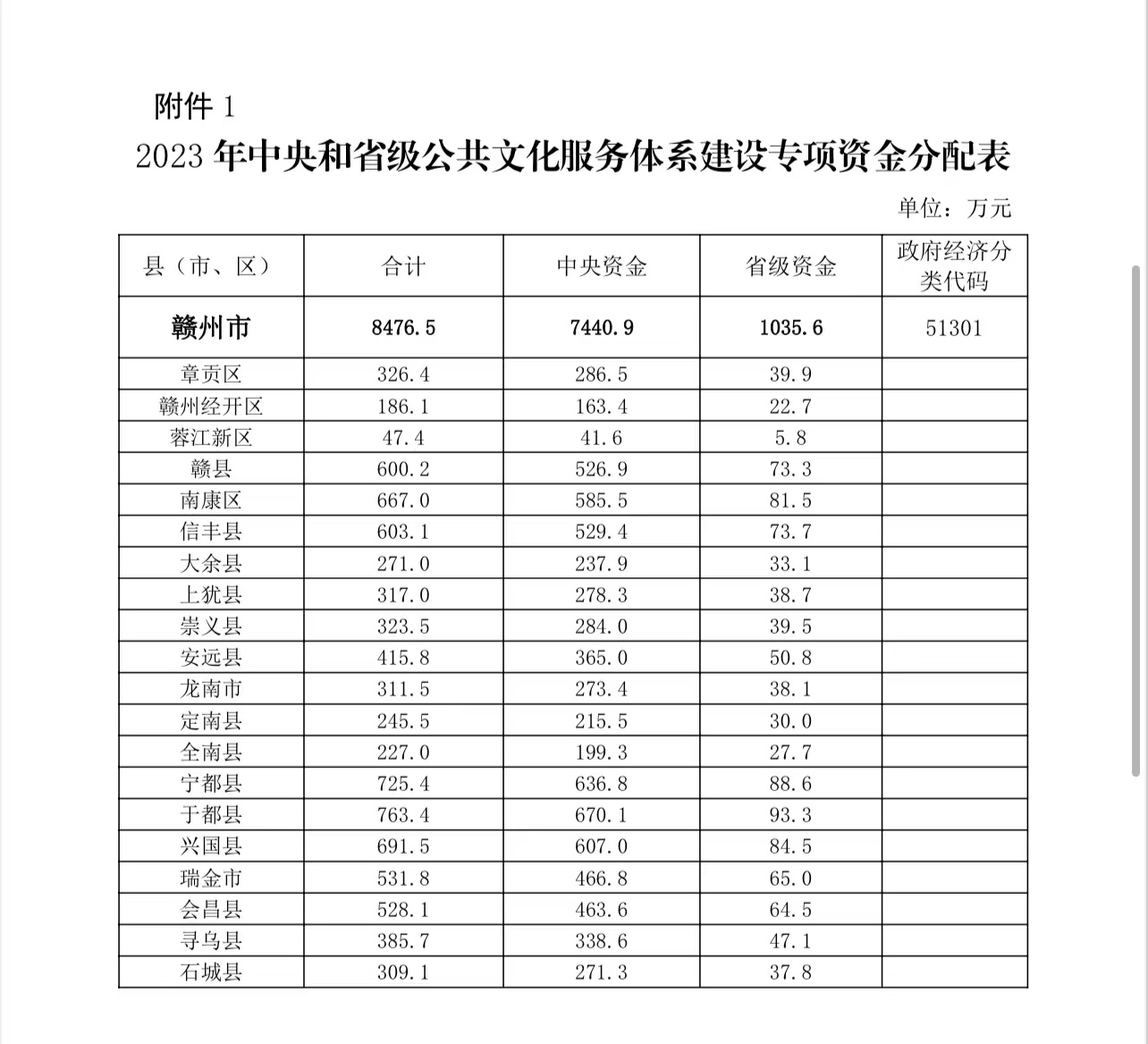 關(guān)于提前下達(dá) 2023 年中央和省級(jí)公共文化服務(wù)體系建設(shè)專(zhuān)項(xiàng)資金的通知》(贛財(cái)文指〔2022〕56 號(hào)),經(jīng)研究,現(xiàn)下達(dá) 2023 年中央和省級(jí)公共文化服務(wù)體系建設(shè)資金 萬(wàn)元(項(xiàng)目代 碼:10000023Z221108000003),支持公共文化設(shè)施設(shè)備購(gòu)置維修 改造、新時(shí)代文明實(shí)踐中心(所、所)、應(yīng)急廣播、電視節(jié)目無(wú) 線(xiàn)數(shù)字化覆蓋、讀書(shū)看報(bào)、送戲送電影下鄉(xiāng)、開(kāi)展文體活動(dòng)等 基層公共文化服務(wù)體系建設(shè)。政府收支功能分類(lèi)科目請(qǐng)列入 2023 年“2070199 其他文化和旅游支出”,市縣補(bǔ)助收入請(qǐng)列入
