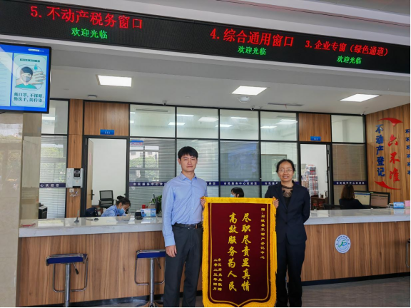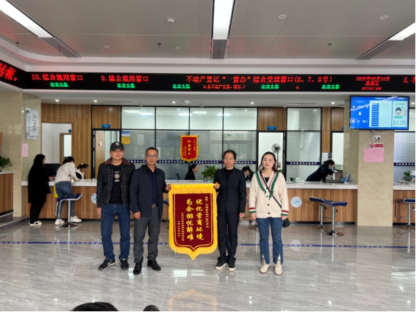 3月24日上午,石城天沐溫泉項目負責人送來一面印有“優(yōu)化營商環(huán)境 為企排憂解難”的錦旗,為不動產(chǎn)登記中心工作人員熱情周到的服務態(tài)度點贊。