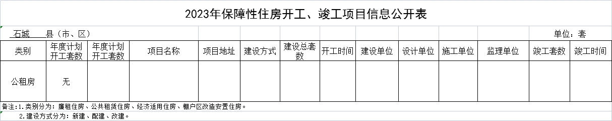2023年保障性住房開工、竣工項(xiàng)目信息公開表