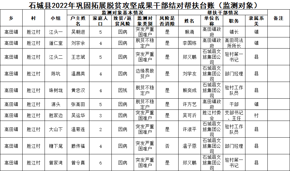 【防止返貧幫扶工作】勝江村2022年鞏固拓展脫貧攻堅成果干部結(jié)對幫扶臺賬(監(jiān)測對象)