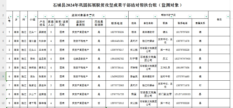 【防止返貧幫扶工作】勝江村2024年鞏固拓展脫貧攻堅(jiān)成果干部結(jié)對(duì)幫扶臺(tái)賬(監(jiān)測(cè)對(duì)象)