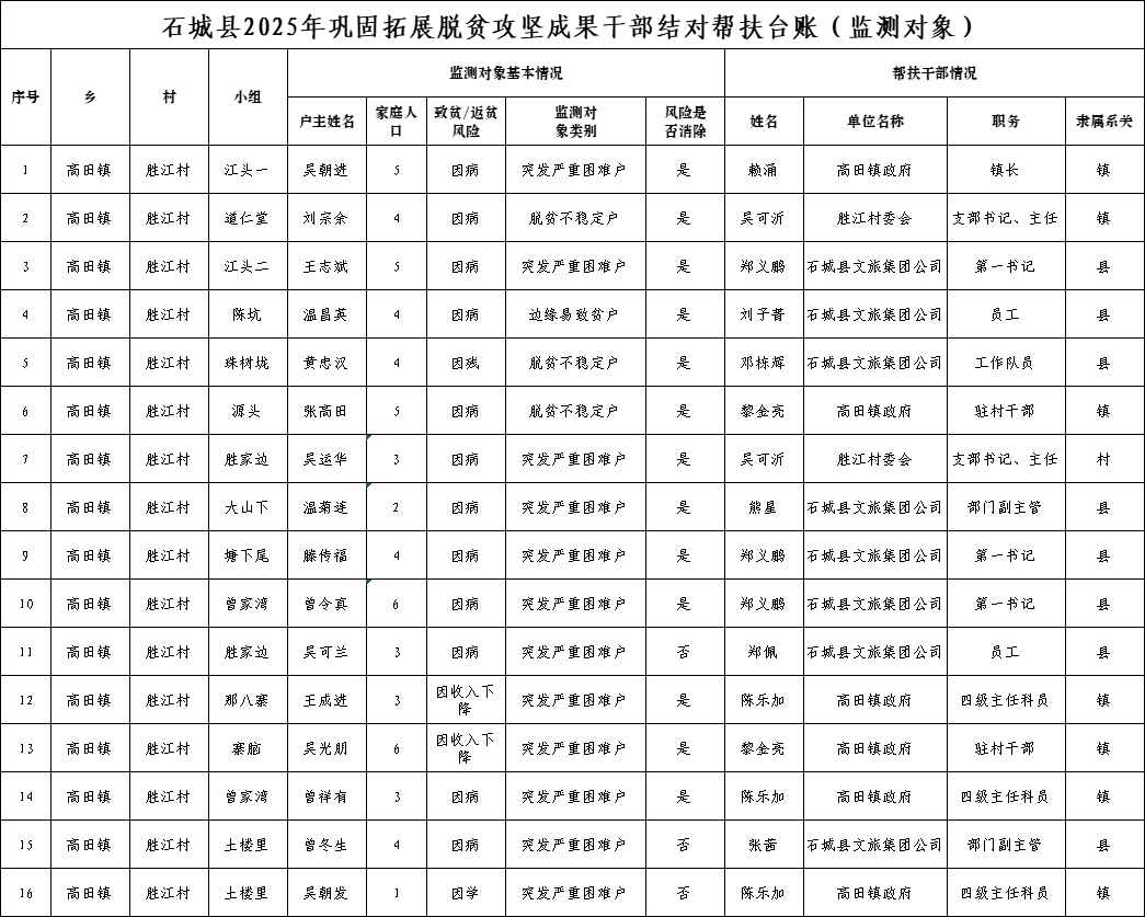【防止返貧幫扶工作】勝江村2025年鞏固拓展脫貧攻堅(jiān)成果干部結(jié)對(duì)幫扶臺(tái)賬(監(jiān)測(cè)對(duì)象)
