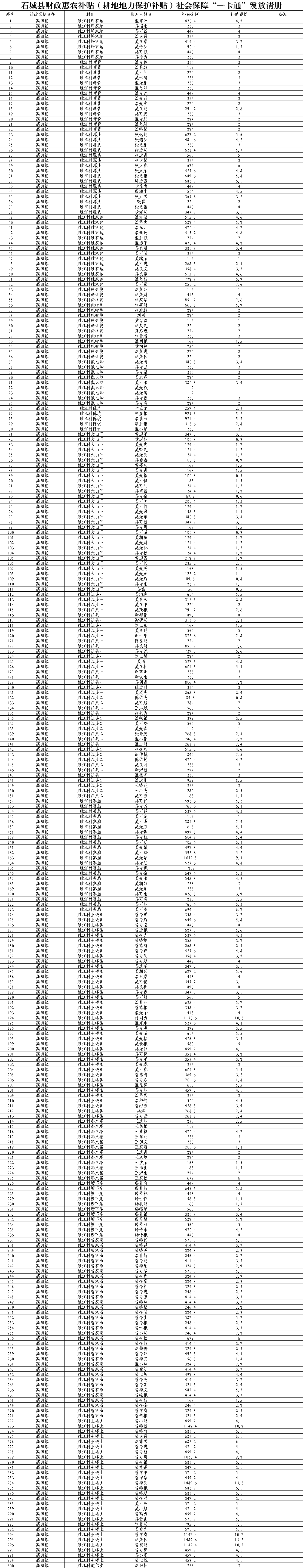 【涉農(nóng)補貼】2022年高田鎮(zhèn)勝江村財政惠農(nóng)補貼(耕地地力保護補貼)社會保障“一卡通”發(fā)放清冊