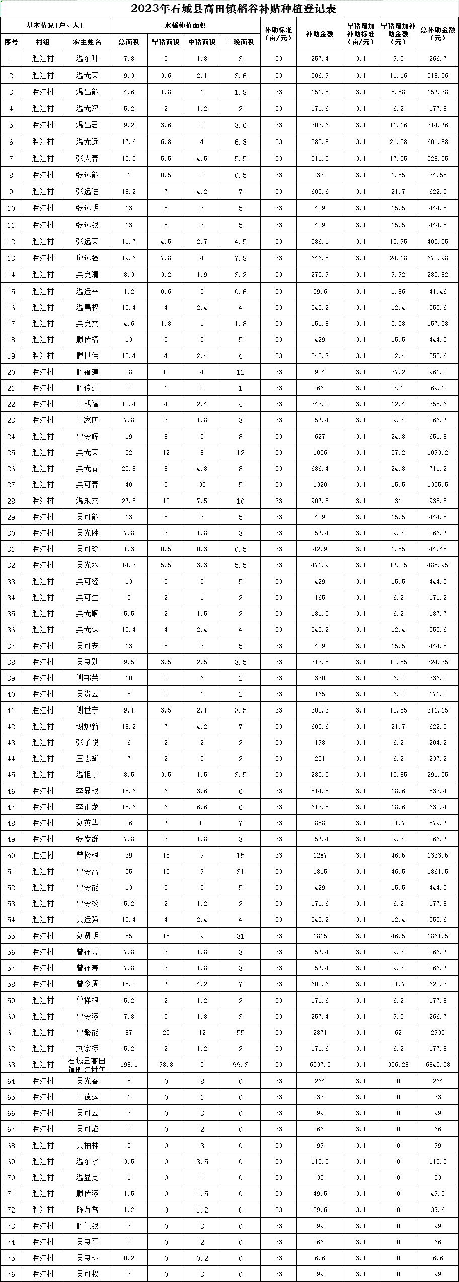 【涉農(nóng)補(bǔ)貼】2023年高田鎮(zhèn)勝江村稻谷補(bǔ)貼種植登記表