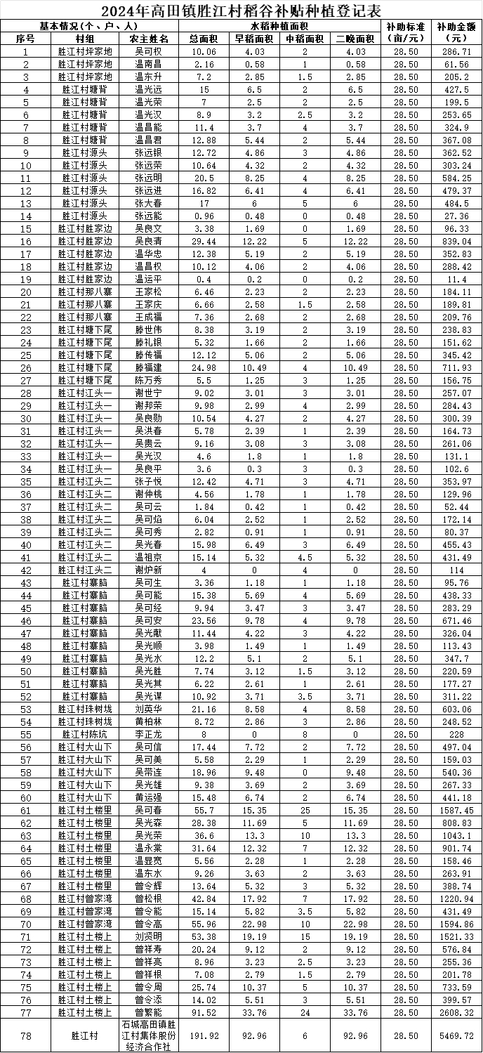 【涉農(nóng)補(bǔ)貼】2024年高田鎮(zhèn)勝江村稻谷補(bǔ)貼種植登記表