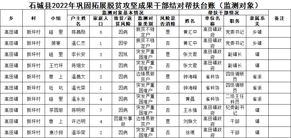 【防止返貧幫扶工作】新坪村2022年鞏固拓展脫貧攻堅成果干部結(jié)對幫扶臺賬(監(jiān)測對象)