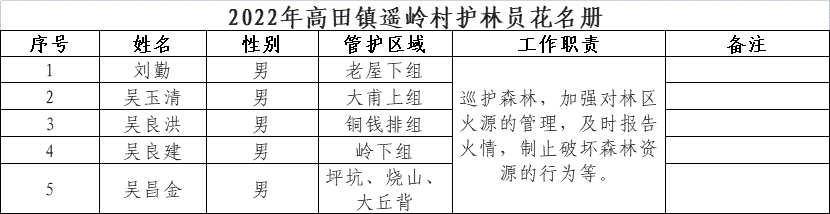 【其他人員信息】2022年高田鎮(zhèn)遙嶺村護(hù)林員花名冊(cè)