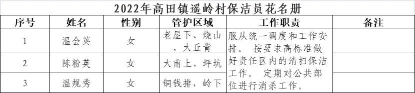 【其他人員信息】2022年高田鎮(zhèn)遙嶺村保潔員花名冊(cè)