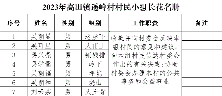 【其他人員信息】2023年高田鎮(zhèn)遙嶺村村民小組長花名冊