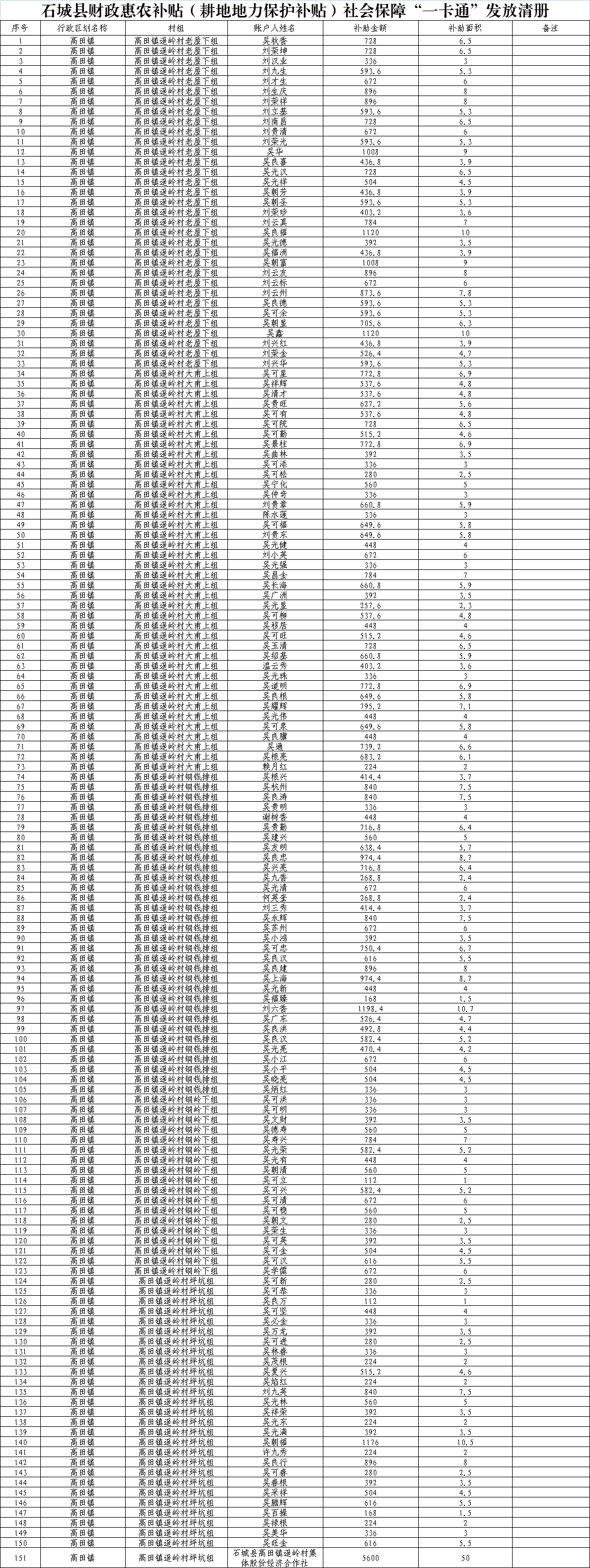 【涉農(nóng)補貼】2022年高田鎮(zhèn)遙嶺村財政惠農(nóng)補貼(耕地地力保護(hù)補貼)社會保障“一卡通”發(fā)放清冊