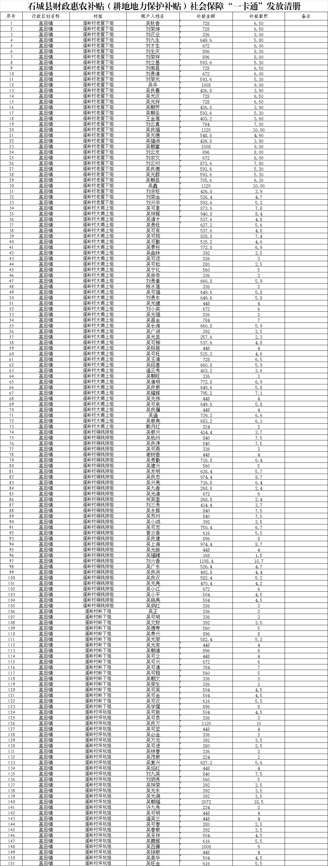 【涉農補貼】2025年高田鎮(zhèn)遙嶺村財政惠農補貼(耕地地力保護補貼)社會保障“一卡通”發(fā)放清冊
