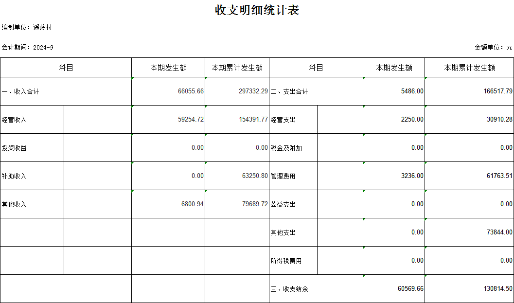 【村(社區(qū))財(cái)務(wù)收支狀況】高田鎮(zhèn)遙嶺村2024年9月份財(cái)務(wù)收支狀況明細(xì)賬