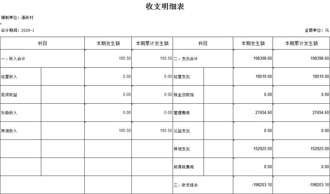 【村(社區(qū))財務收支狀況】高田鎮(zhèn)遙嶺村2025年1月份財務收支狀況明細賬