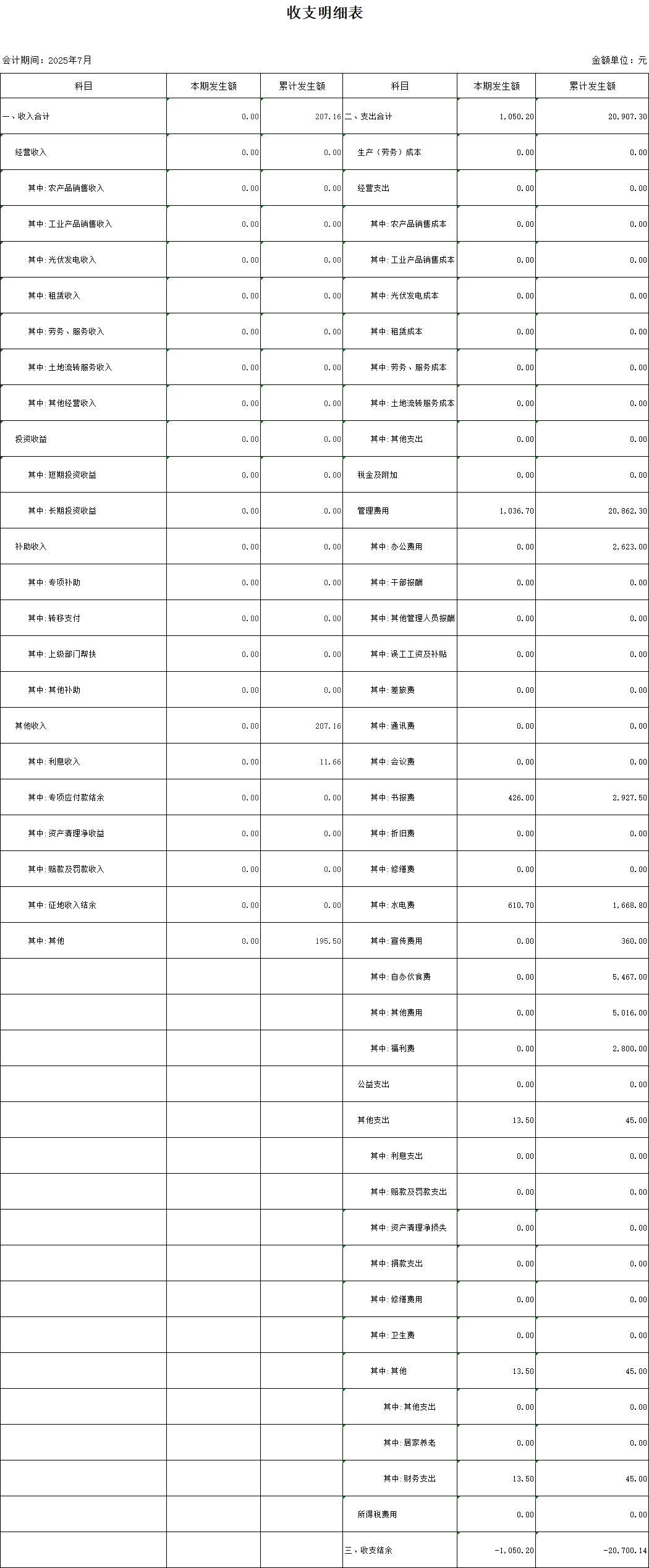 【村(社區(qū))財務(wù)收支狀況】高田鎮(zhèn)遙嶺村2025年7月份財務(wù)收支狀況明細(xì)賬