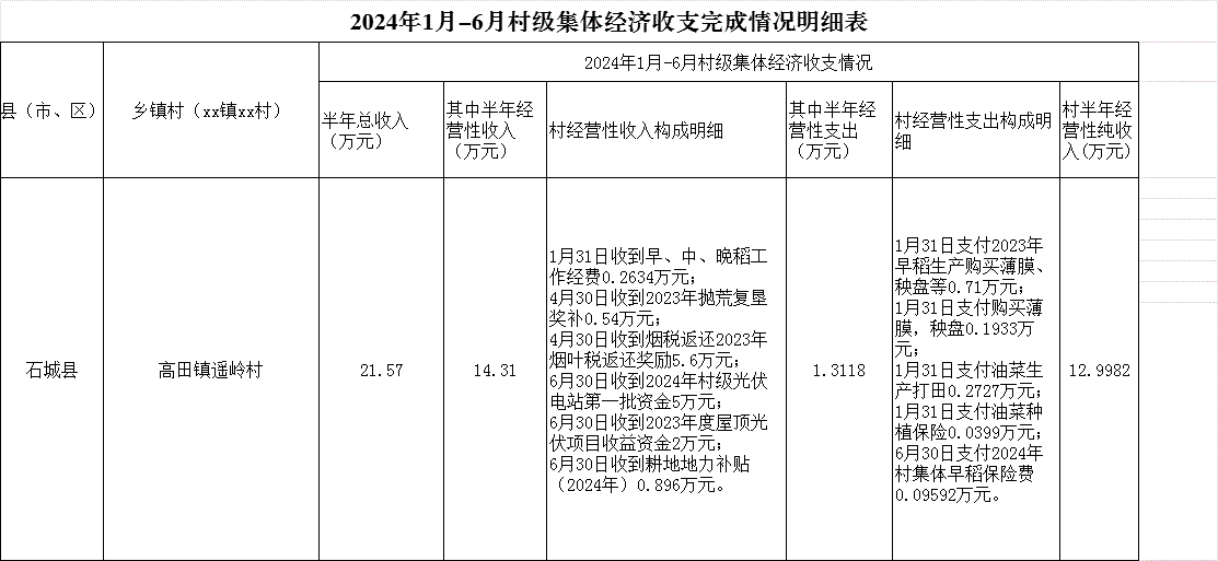 【集體統(tǒng)一經(jīng)營的經(jīng)營性資產(chǎn)】高田鎮(zhèn)遙嶺村2024年1-6月各村集體經(jīng)濟(jì)收入情況統(tǒng)計表