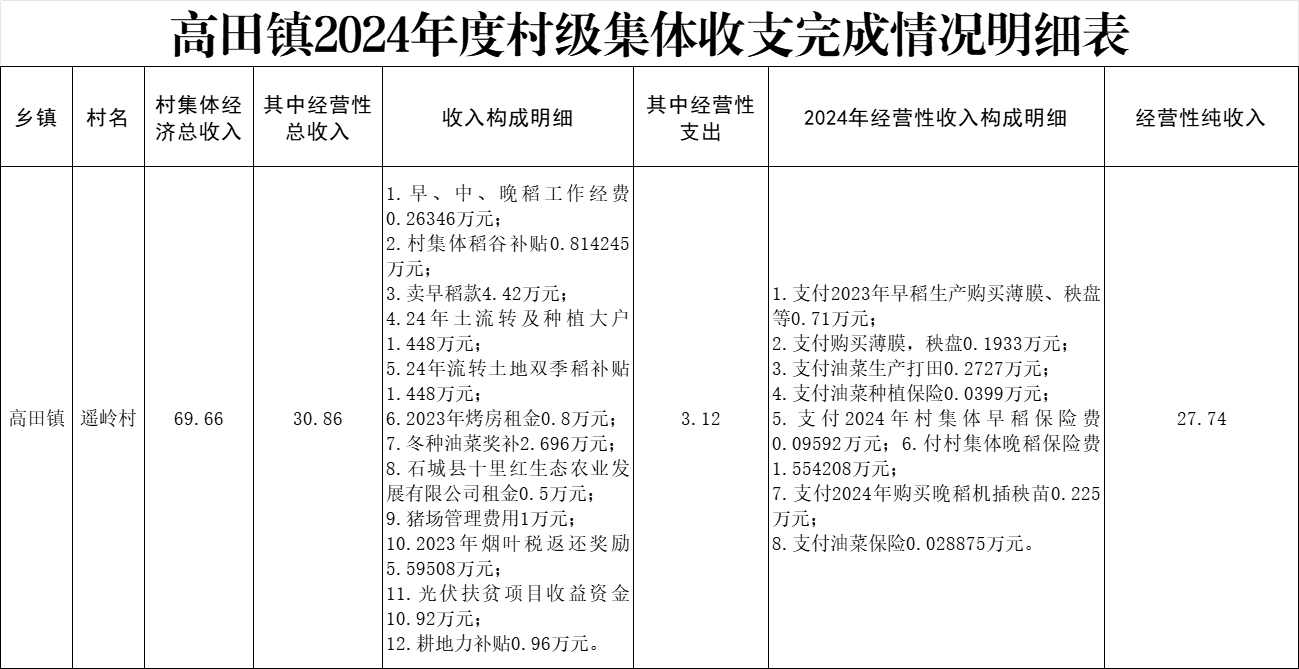 2024年遙嶺村集體經(jīng)濟(jì)收支明細(xì)(按年度更新)