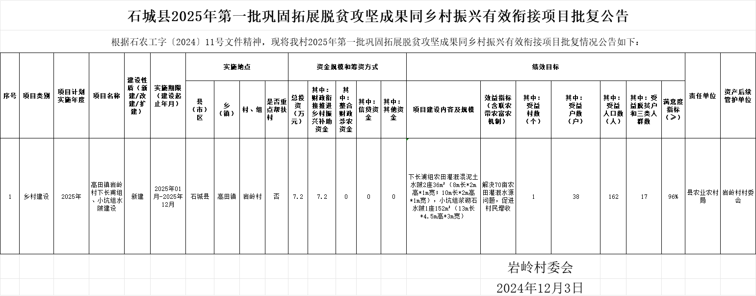 石城縣2025年第一批鞏固拓展脫貧攻堅(jiān)成果同鄉(xiāng)村振興有效銜接項(xiàng)目批復(fù)公告