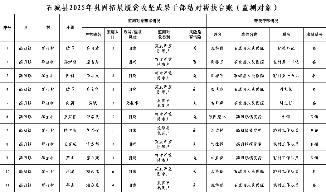 【防止返貧幫扶工作】琴生村2025年鞏固拓展脫貧攻堅(jiān)成果干部結(jié)對(duì)幫扶臺(tái)賬(監(jiān)測(cè)對(duì)象)