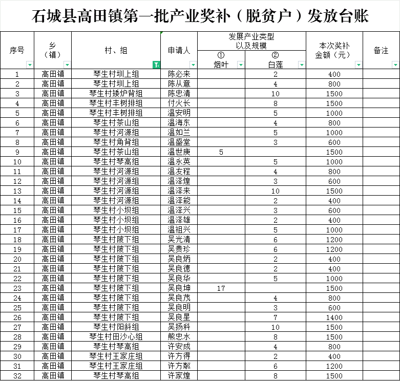 【涉農(nóng)補(bǔ)貼】2024年高田鎮(zhèn)第一批產(chǎn)業(yè)獎(jiǎng)補(bǔ)(脫貧戶)發(fā)放臺(tái)賬