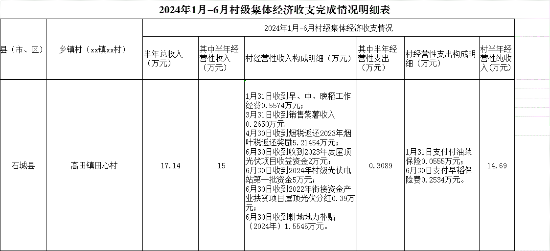 【集體統(tǒng)一經(jīng)營(yíng)的經(jīng)營(yíng)性資產(chǎn)】高田鎮(zhèn)琴生村2024年1-6月各村集體經(jīng)濟(jì)收入情況統(tǒng)計(jì)表