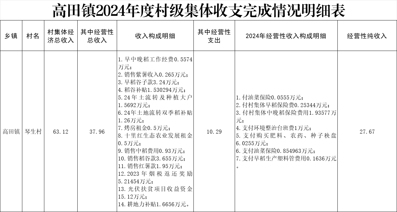 2024年琴生村集體經(jīng)濟(jì)收支明細(xì)(按年度更新)