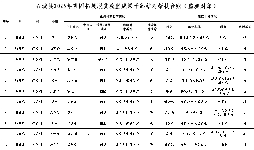 【防止返貧幫扶工作】鄭里村2025年鞏固拓展脫貧攻堅成果干部結(jié)對幫扶臺賬(監(jiān)測對象)