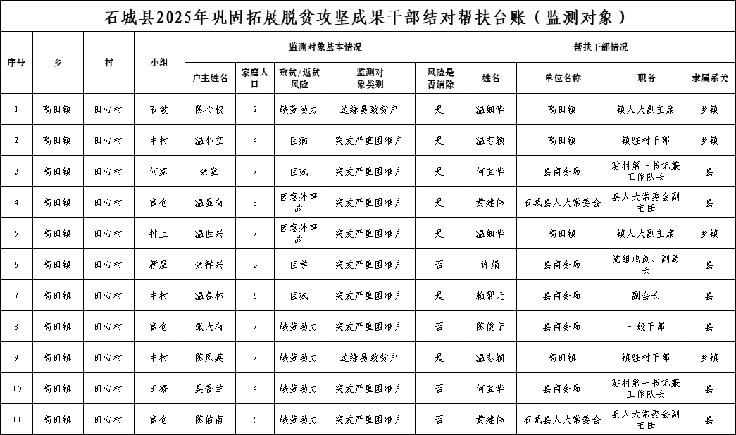 【防止返貧幫扶工作】田心村2025年鞏固拓展脫貧攻堅(jiān)成果干部結(jié)對(duì)幫扶臺(tái)賬(監(jiān)測(cè)對(duì)象)