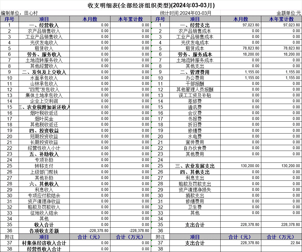 【村(社區(qū))財(cái)務(wù)收支狀況】高田鎮(zhèn)田心村2024年3月份財(cái)務(wù)收支狀況明細(xì)賬
