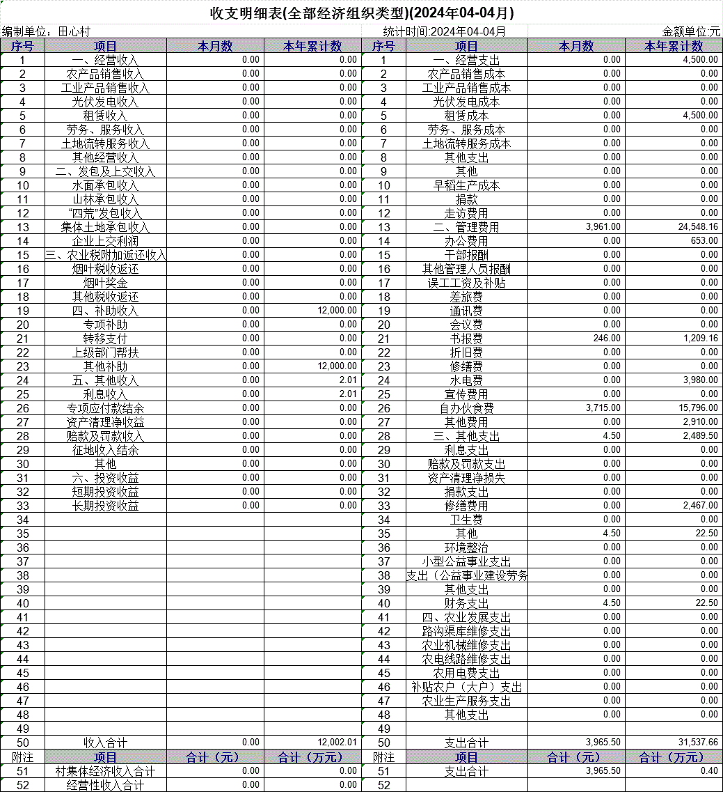 【村(社區(qū))財務收支狀況】高田鎮(zhèn)田心村2024年4月份財務收支狀況明細賬