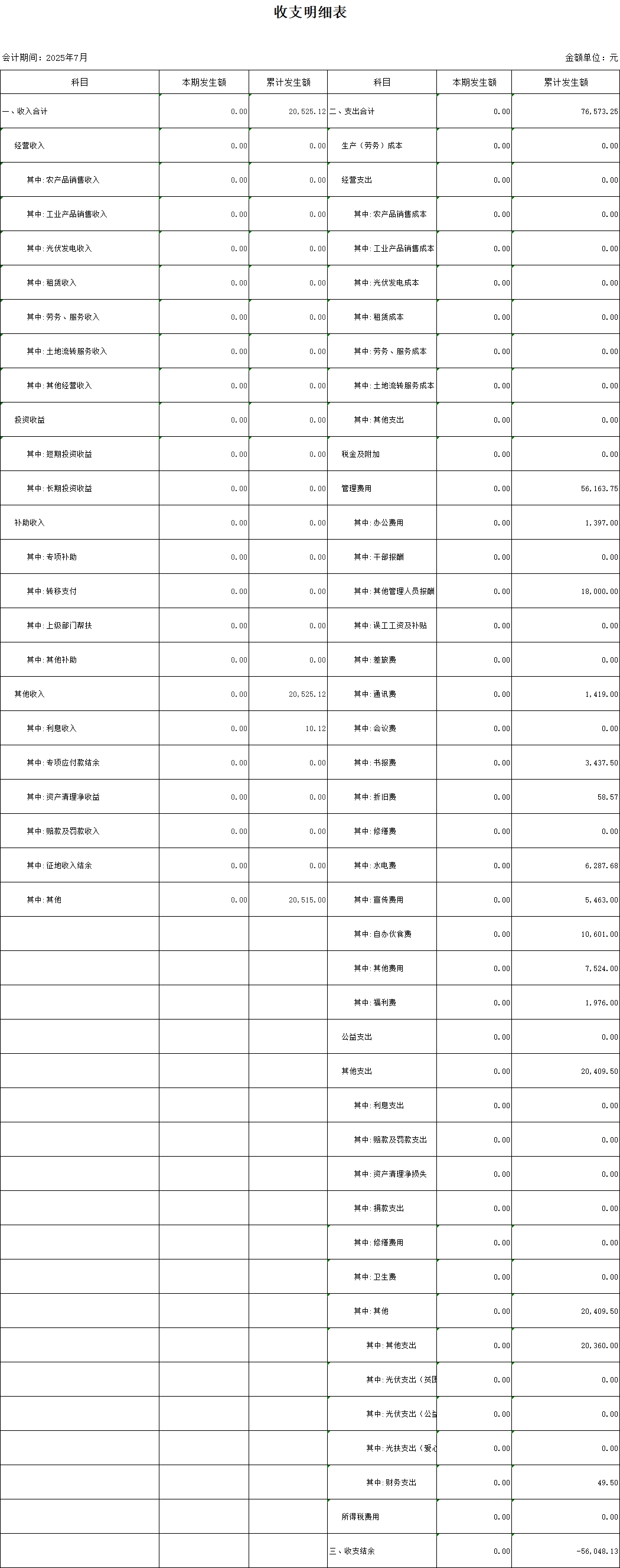 【村(社區(qū))財(cái)務(wù)收支狀況】高田鎮(zhèn)湖坑村2025年7月份財(cái)務(wù)收支狀況明細(xì)賬