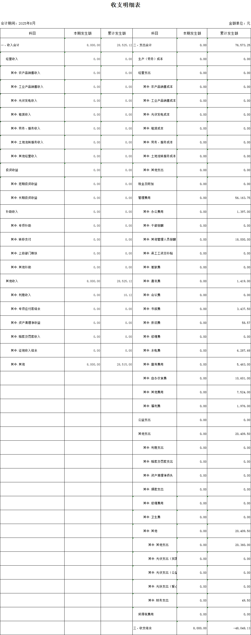 【村(社區(qū))財(cái)務(wù)收支狀況】高田鎮(zhèn)湖坑村2025年8月份財(cái)務(wù)收支狀況明細(xì)賬