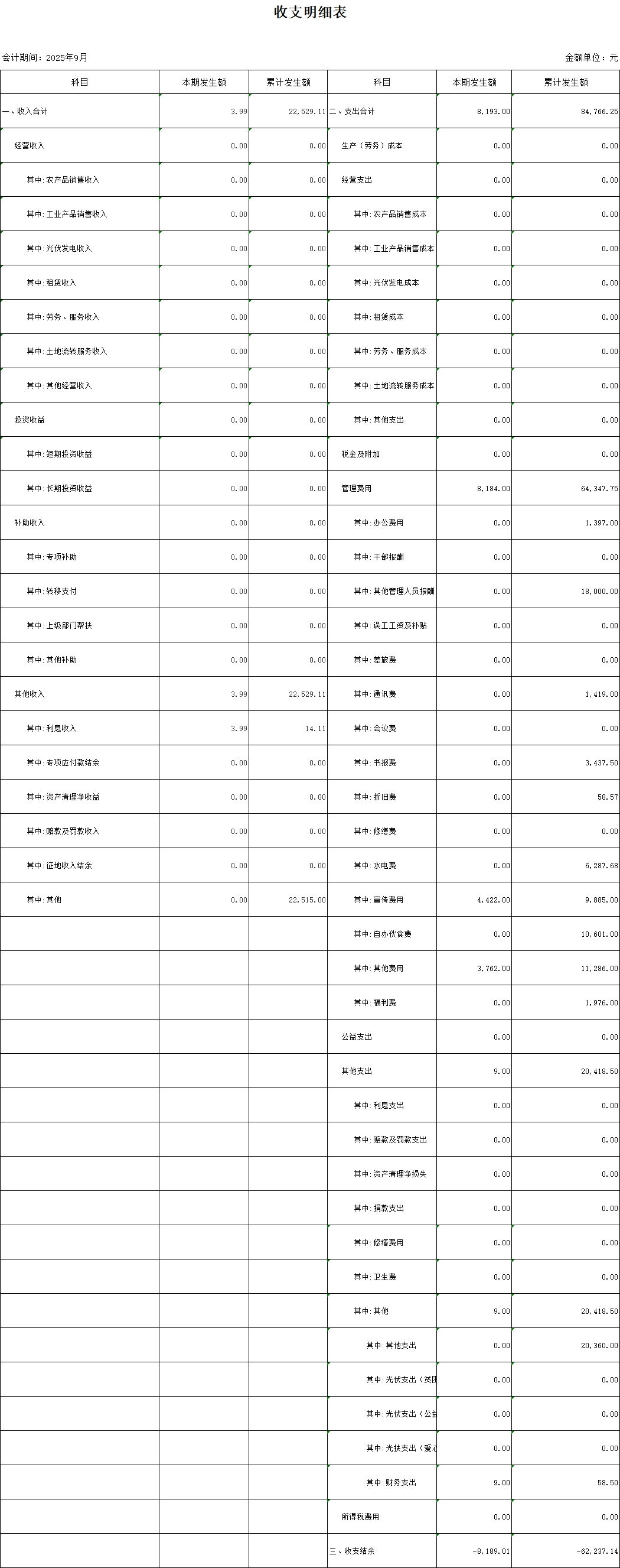 【村(社區(qū))財務(wù)收支狀況】高田鎮(zhèn)湖坑村2025年9月份財務(wù)收支狀況明細(xì)賬