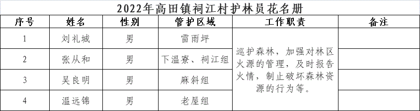 【其他人員信息】2022年高田鎮(zhèn)祠江村護林員花名冊