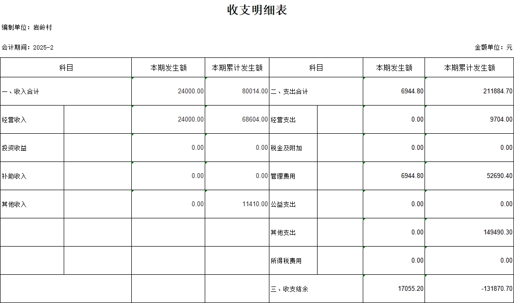 【村(社區(qū))財務(wù)收支狀況】高田鎮(zhèn)巖嶺村2025年2月份財務(wù)收支狀況明細(xì)賬